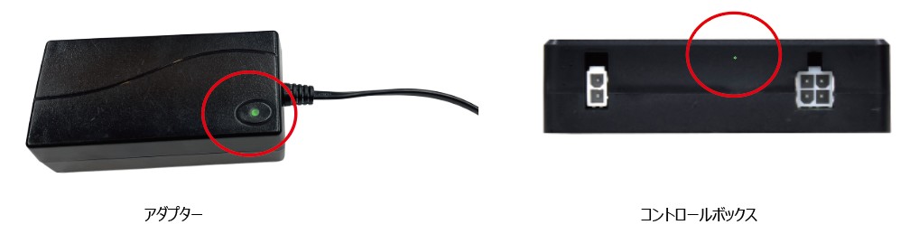 ①ACアダプターのライトおよびコントロールボックス(ベッド裏面)のパワーLEDライトが点灯していることを確認してください。